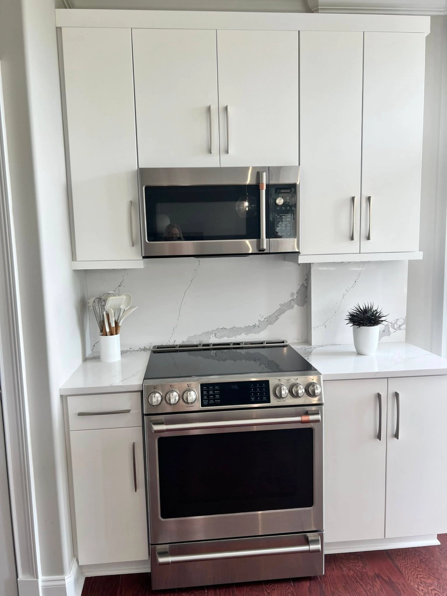 We use premium materials like quartz countertops, hardwood cabinetry, and tile for lasting beauty.